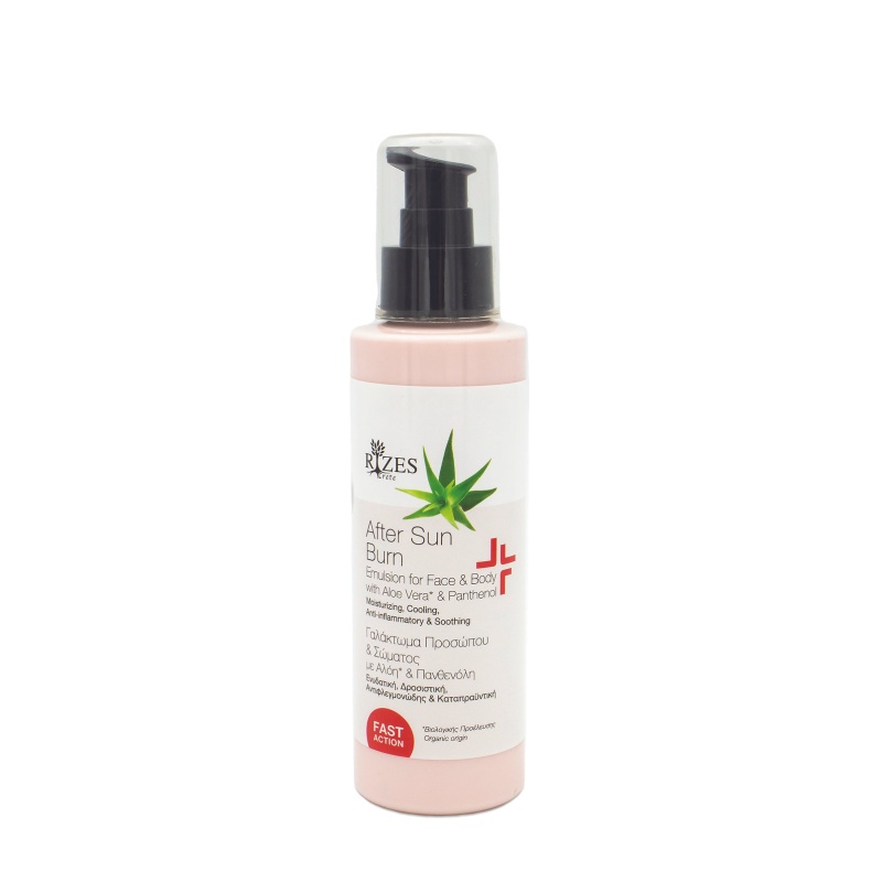 Päevitusjärgne emulsioon sisaldab mahetoodetud aloe verat ja oliiviõli, pantenooli, tsinkoksiidi, kalamiini, palsamiõli, mentooli ja allantoiini – koostisosi, mis toovad niisutust ja taastumist päikesepõlenud ja tundlikule nahale.